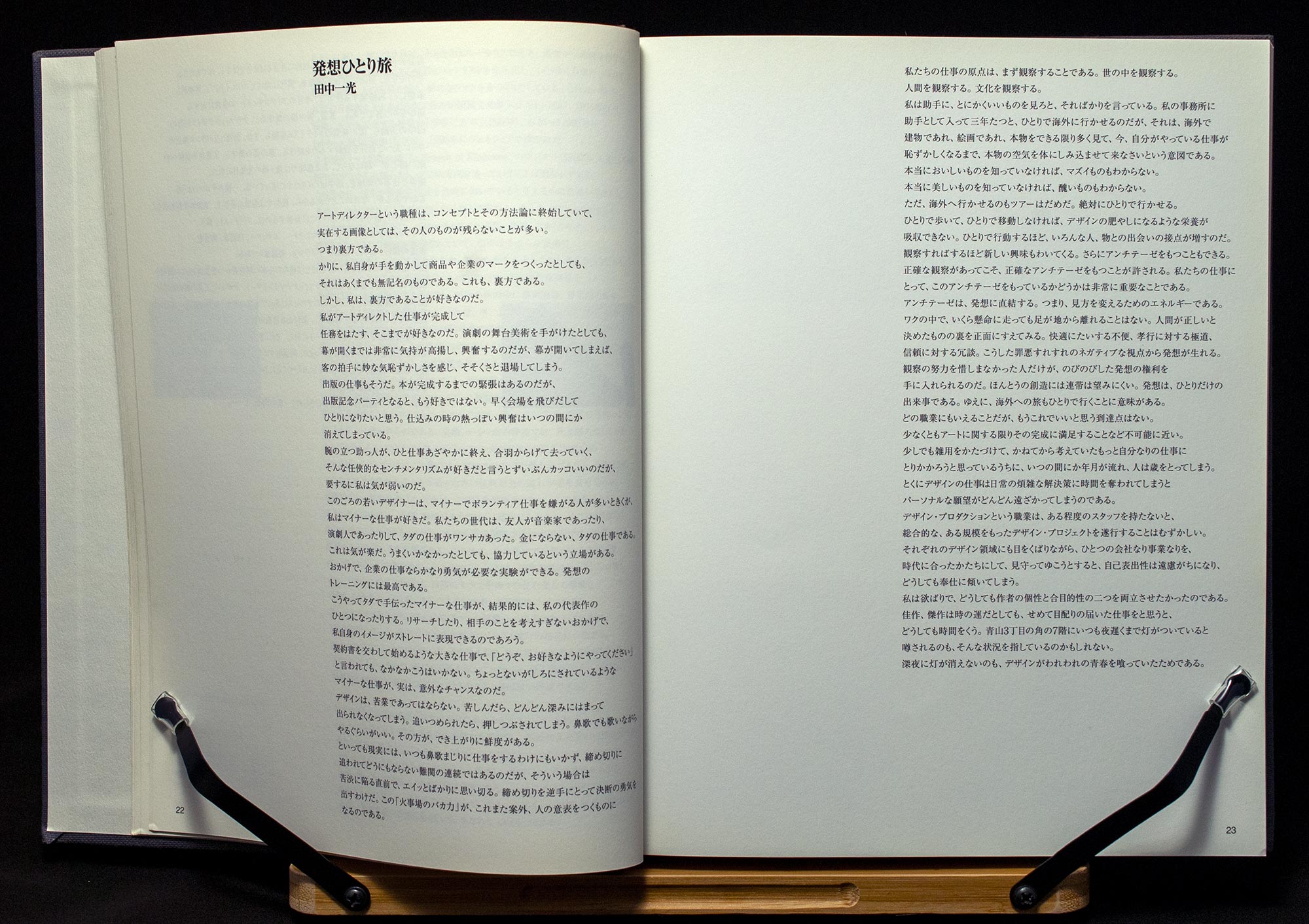 In der Tat habe ich hier ein interessantes Beispiel für einen japanischen Pseudo-Flattersatz. Es handelt sich um einen Katalog über die Arbeiten von Ikko Tanaka (1930–2002), der bis heute einer der einflußreichsten japanischen Grafikdesigner ist und als der Urvater des Grafikdesigns in Japan gilt. Der vorliegende Katalog wurde von seinem eigenen Designstudio gestaltet, d.h., dieser Pseudo-Flattersatz ist kein Fehler sondern durchaus so gewollt.
